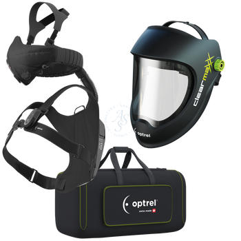 Gotowy do szlifowania pakiet Clearmaxx + nakrycie głowy IsoFit® + Optrel EN397 HardHat+ szwajcarski system ochrony dróg oddechowych