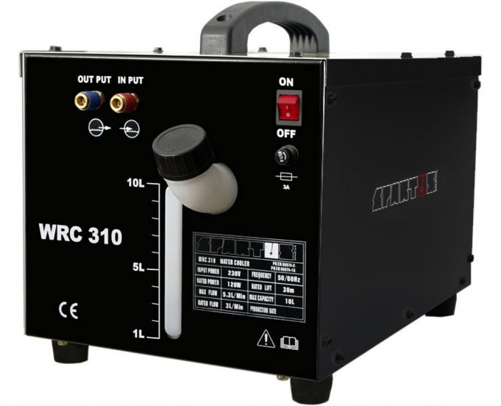 Chłodnica SPARTUS® WRC310 przeznaczona jest do chłodzenia uchwytów spawalniczych. Charakteryzuje się dużą wydajnością i 100% cyklem pracy. Pojemnik na płyn chłodzący ma pojemność 10l i wyposażony jest w miernik poziomu płynu. Chłodnica zasilana jest z sieci jednofazowej 230V.