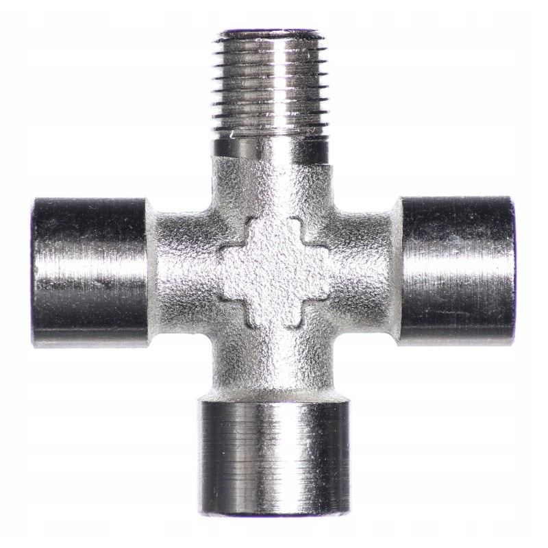 Czwórnik gwintowany z mosiądzu niklowanego umożliwia łączenie elementów instalacji pneumatycznych i hydraulicznych. Złączka cechuje się wysoką odpornością na działanie szkodliwych czynników takich jak wilgoć (wysoka odporność na korozję), oleje czy wysoka temperatura. Nadaje się do instalacji pneumatycznych, gazowych, wodnych i ciepłowniczych.