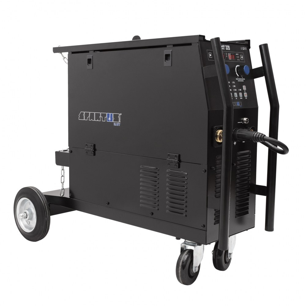 Maksymalny prąd spawania dla modelu SPARTUS® EasyMIG 320 wynosi 300A dla metod MIG/MAG, TIG oraz 250A dla metody MMA. Wysoki 60% cykl pracy, zapewnia stabilne parametry wyjściowe podczas długotrwałych prac spawalniczych. Urządzenie zasilane jest z sieci trójfazowej 400V.