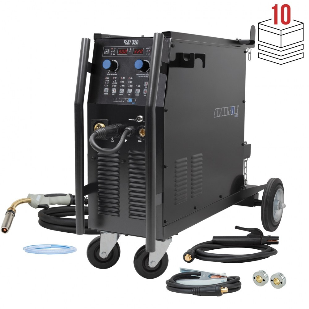 SPARTUS® EasyMIG 320 to nowoczesne, inwertorowe i profesjonalne urządzenie do spawania metodami MIG/MAG w osłonie gazów obojętnych lub aktywnych oraz do spawania elektrodą otuloną MMA. Dzięki łatwej zmianie biegunowości umożliwia spawanie drutem samoosłonowym bez gazu.