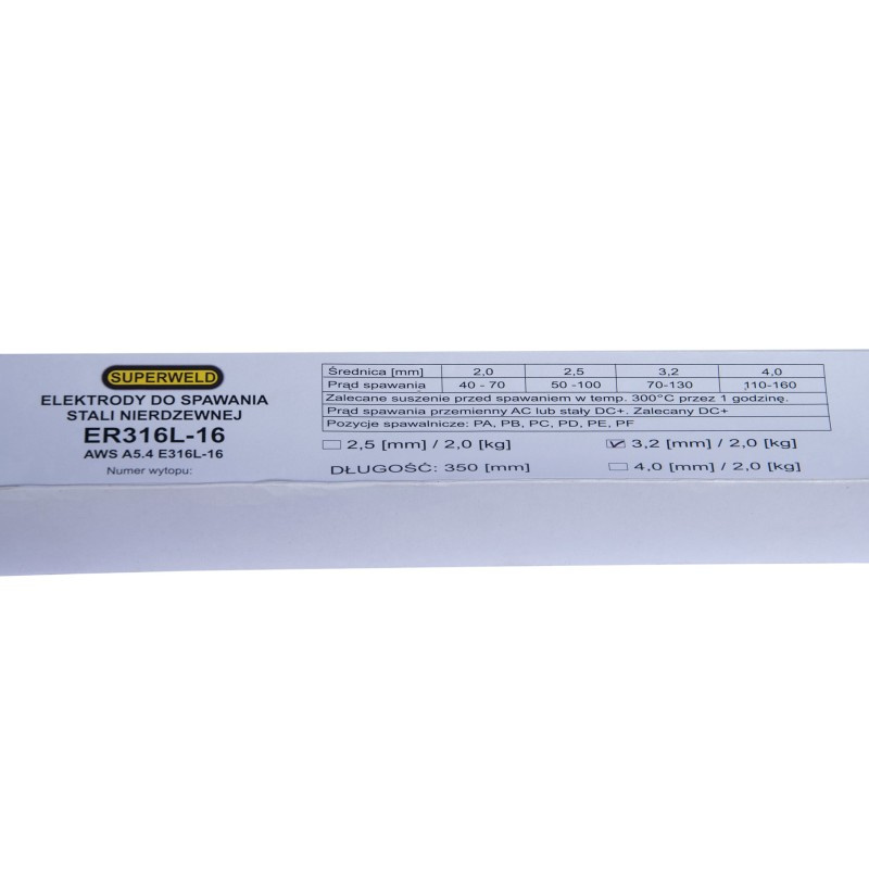 Elektrody otulone SUPERWELD 316L o niskiej zawartości węgla przeznaczone są do spawania austenitycznych stali kwasoodpornych z gatunku 18%Cr-8%Ni-2,8%Mo oraz stali o podobnym składzie.