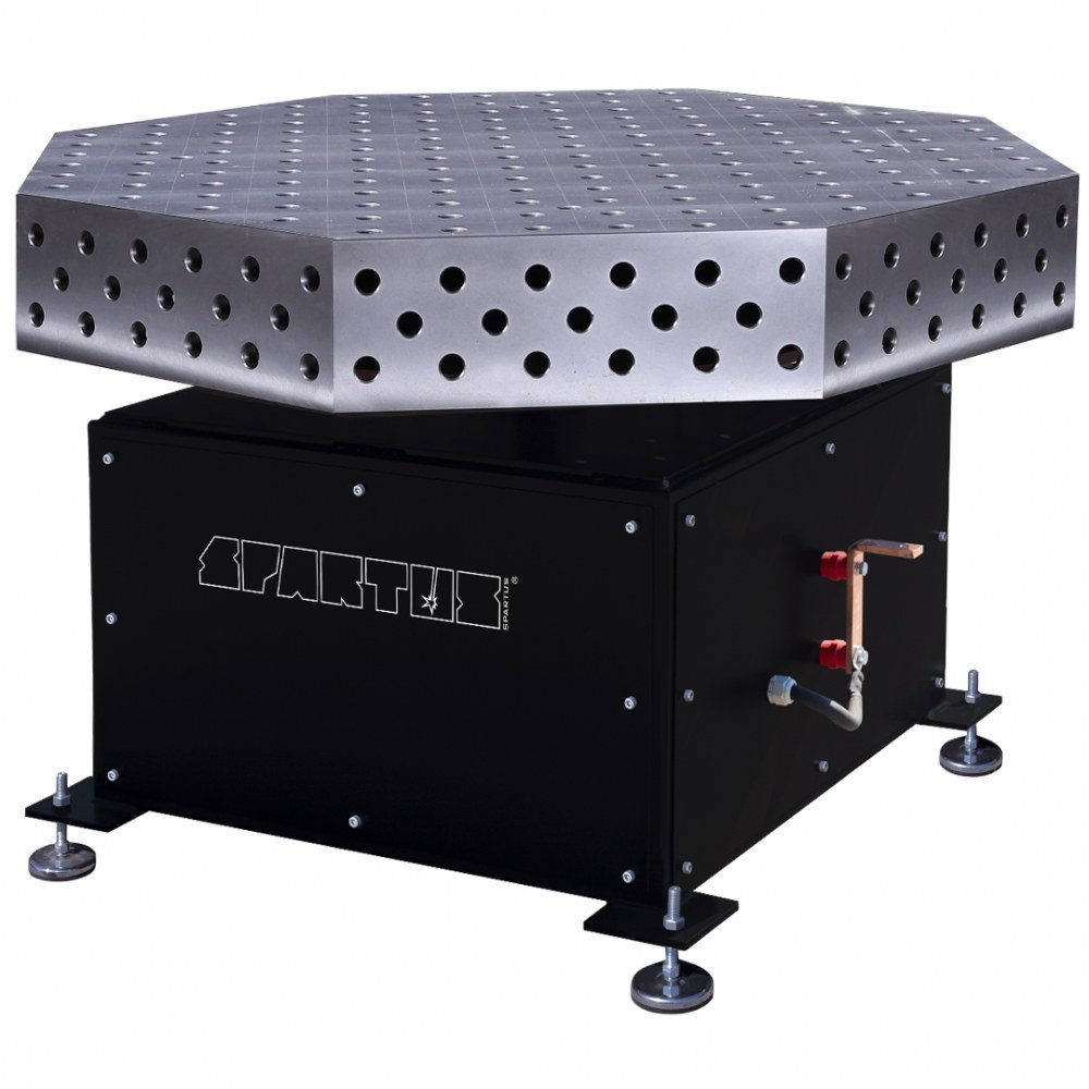 Stoły obrotowe SPARTUS® zaprojektowane zostały specjalnie do pracy w pozycji pionowej. Regulowany rozruch na płynnych obrotach z gładkim hamowaniem jest zasługą zastosowania najwyższej klasy silników sterowanych falownikami. Kompaktowa i zwarta budowa urządzenia zapewnia dobry dostęp do obrabianego elementu, pozwalając na precyzyjną i komfortową pracę. Interfejs sterowania: ręczny panel  + przycisk nożny (na osobnych przewodach).