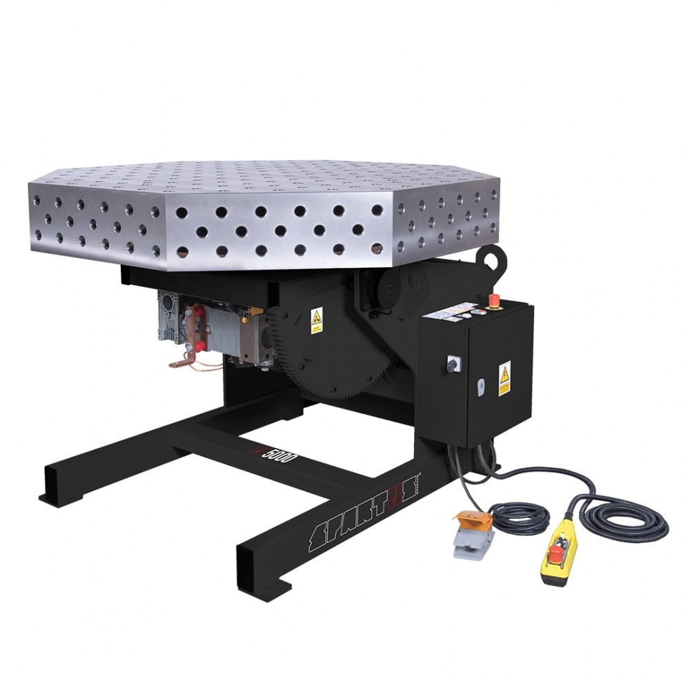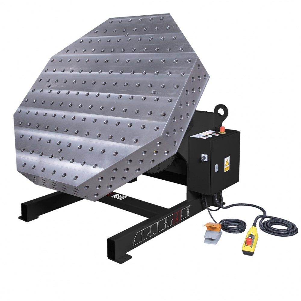Stół z pozycjonerem umożliwia dostosowanie pozycji stanowiska pracy do potrzeb pracownika. Pozycjoner daje możliwość obrotu blatu roboczego ze zmienną prędkością w obu kierunkach oraz zmianę kąta pochylenia ramy głównej. Sterowanie odbywa się za pomocą przycisku nożnego. Samohamowny napęd zapewnia zatrzymanie tarczy obrotowej w dowolnej pozycji. Mechanizmy pozycjonera zapewniają obrót wokół własnej osi i odchylenie obrotnika do 140° od poziomu, natomiast kąt pochylenia po zamontowaniu blatu stołu wynosi 90°. Interfejs sterowania: ręczny panel + przycisk nożny (na osobnych przewodach).
