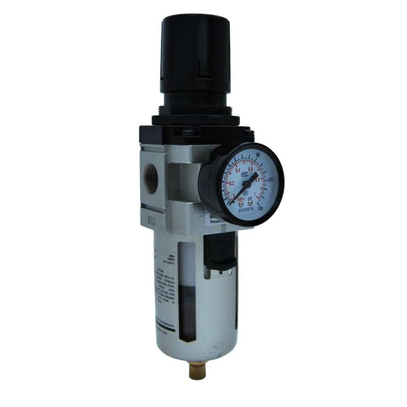 Filtroreduktor powietrza marki MAGNUM służy do oczyszczenia sprężonego powietrza i regulacji ciśnienia wyjściowego. Wkładka cyklonowa powoduje osadzanie się kondensatu w zbiorniku, a wkład filtracyjny zabezpiecza układ przed przedostaniem się zanieczyszczeń stałych i płynnych o wielkości przekraczającej jego gradację. Reduktor membranowy pozwala na ustalenie stałej wartości ciśnienia wyjściowego niezależnie od wahań ciśnienia wejściowego przekraczającego ciśnienie wyjściowe. Filtroreduktor wyposażony jest w automatyczny, pływakowy spust kondensatu.