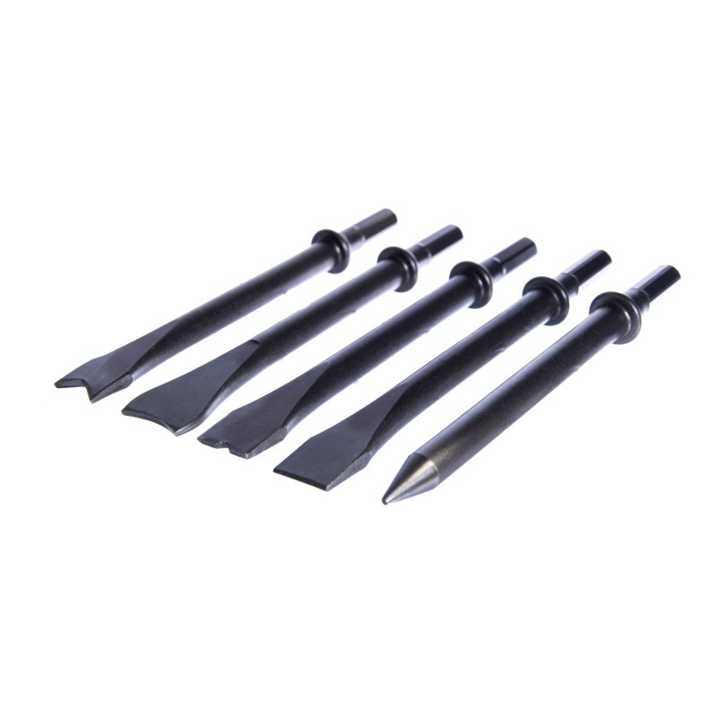 Groty zapasowe do młotków pneumatycznych firmy MAGNUM. W zestawie znajduje się pięć długich dłut z sześciokątnym trzpieniem. Groty kompatybilne są z większością młotków pneumatycznych które posiadają sześciokątne gniazdo o średnicy 10 mm. Produkt wykonany z utwardzanej stali konstrukcyjnej.