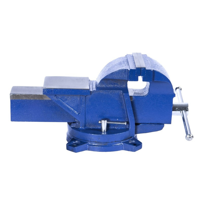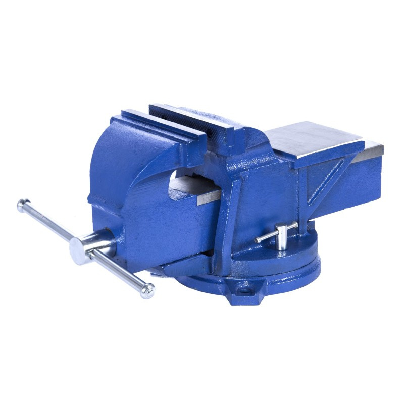 Solidne imadło ślusarskie na obrotowej podstawie. Korpus odlany z dużą starannością, posiada kowadło przydatne do kształtowania przedmiotów. Wytrzymała i sztywna konstrukcja imadła zapewnia przenoszenie dużych obciążeń oraz dobre tłumienie drgań. Solidne, wykonane z wysokiej jakości stali szczęki imadła z nacięciem krzyżowym gwarantuje pewne mocowanie obrabianego przedmiotu.