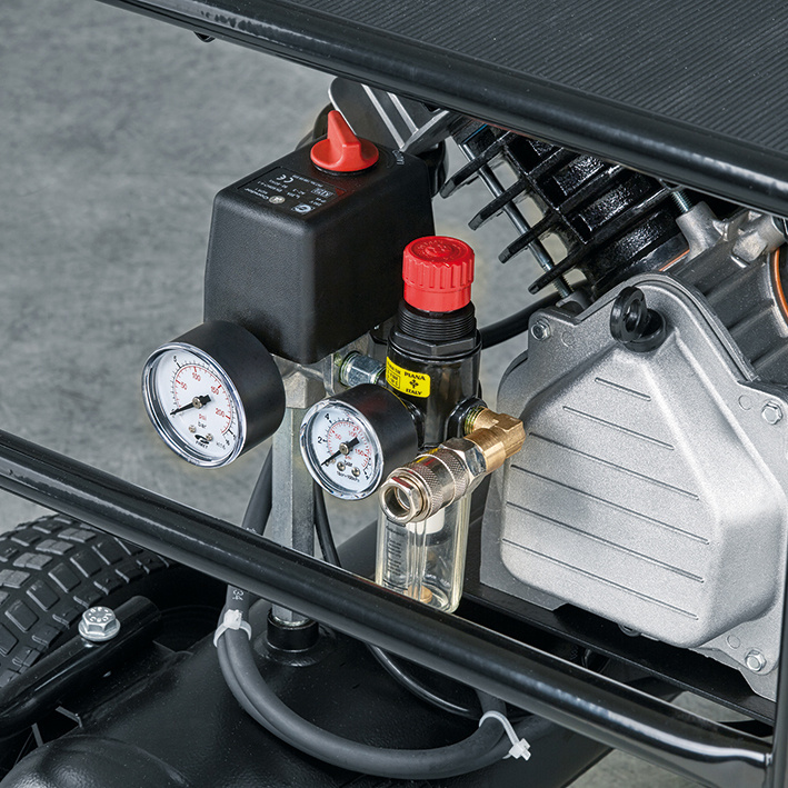 Model przystosowany do pracy ciągłej. Wyposażony w dwa zbiorniki 11 o pojemności 11 litrów każdy. Specjalna konstrukcja umożliwia wykorzystanie kompresora na budowie czy w trudnym terenie. Bardzo duże koła transportowe oraz wygodny uchwyt ułatwiają transport i przemieszczanie.