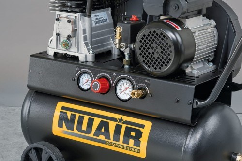 NUAIR 28DA441NUA205 to cichy i kompaktowy kompresor tłokowy przeznaczony do zasilania trójfazowego (400V), oferujący niezawodną wydajność 255 l/min i ciśnienie robocze do 10 bar. Zbiornik o pojemności 50 litrów zapewnia odpowiednią rezerwę sprężonego powietrza, a kompaktowa konstrukcja sprawia, że urządzenie świetnie sprawdza się w warsztatach, garażach oraz przy pracach montażowych i serwisowych.
