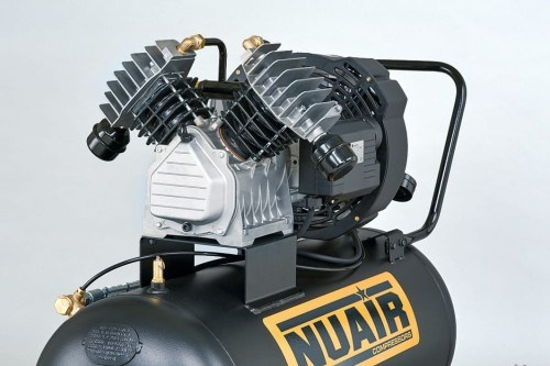 NUAIR 3BFA504NUA to wyjątkowo solidny i wydajny kompresor olejowy tłokowy, zaprojektowany z myślą o intensywnych zastosowaniach warsztatowych, przemysłowych oraz w pracy ciągłej. Wyposażony w wydajną pompę dwucylindrową typu GVM oraz 4-biegunowy silnik o mocy 3 KM, oferuje niezawodną i długowieczną pracę nawet w wymagających warunkach.