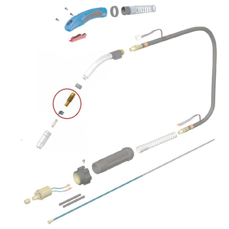 Łącznik prądowy kompatybilny z uchwytami spawalniczymi MIG/MAG typu MB 145, MK 14/2, MB 14 oraz jego odpowiednikami.