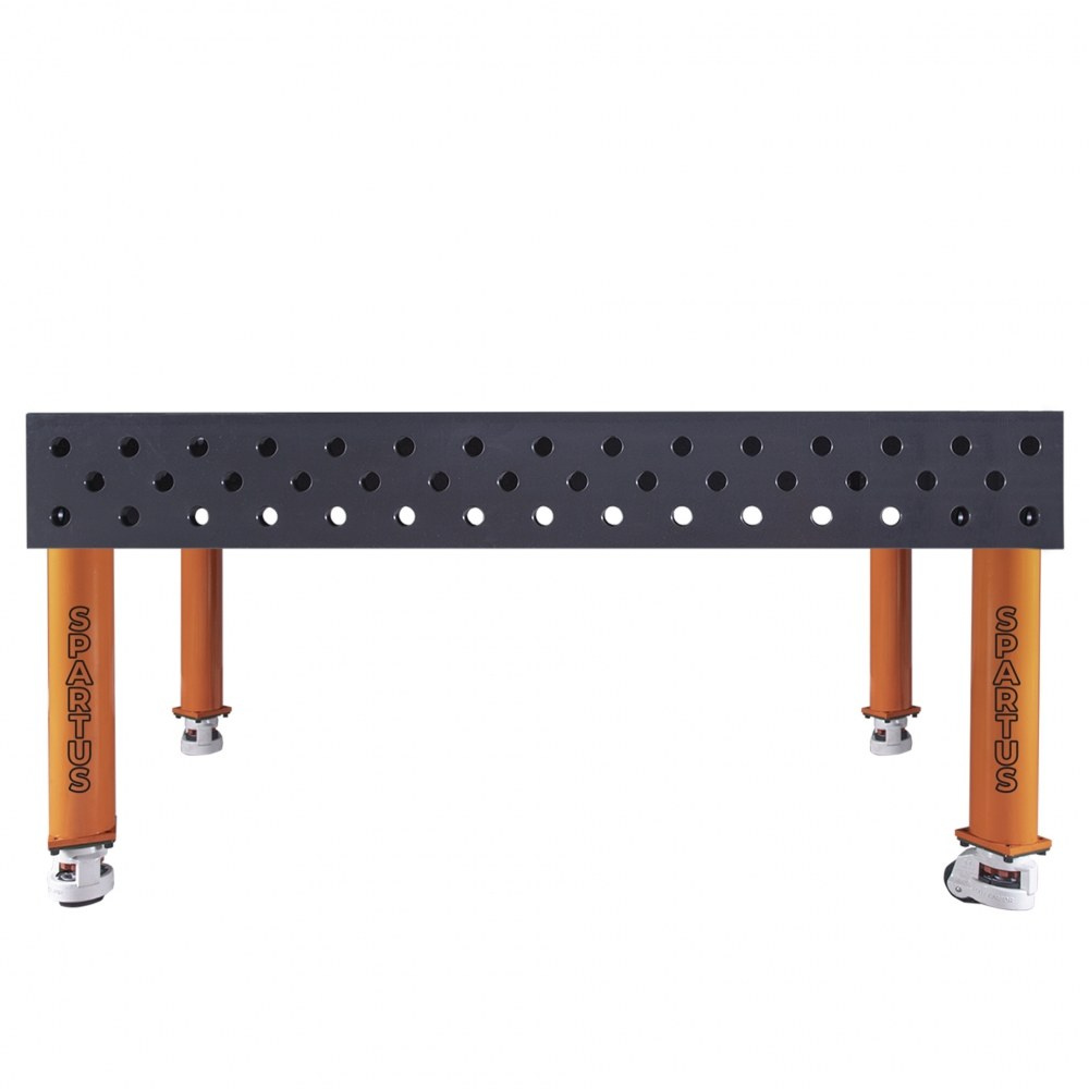 • STAL S355J2+N AZOTOWANA Stal S355J2+N, wykorzystana do wykonania stołu, daje wysoką wytrzymałość i odporność na uderzenia, a plazmowe azotowanie spawanego blatu zwiększa ochronę przed korozją i odpryskami spawalniczymi