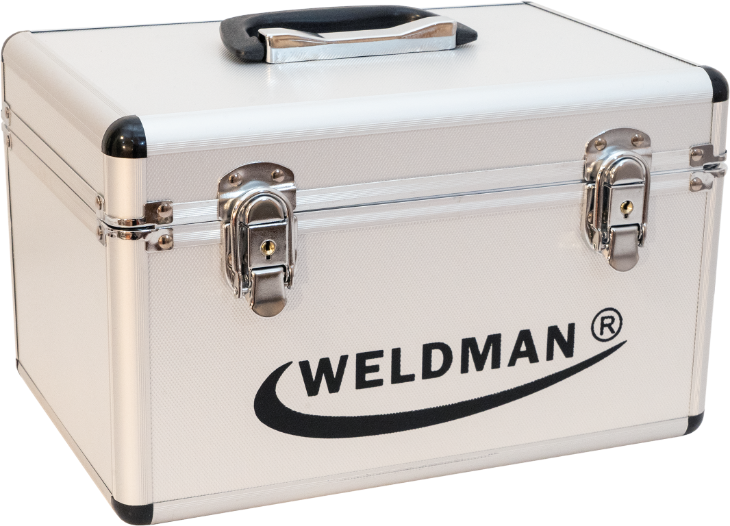 Wyposażenie obejmuje: przewód 2 m z uchwytem elektrody 200 A (DX25), przewód 1,6 m z zaciskiem masy 200 A (DX25), przewód zasilający 2 m z wtyczką 230 V, tarczę spawalniczą, szczotkę z młotkiem do obijania, walizkę aluminiową.