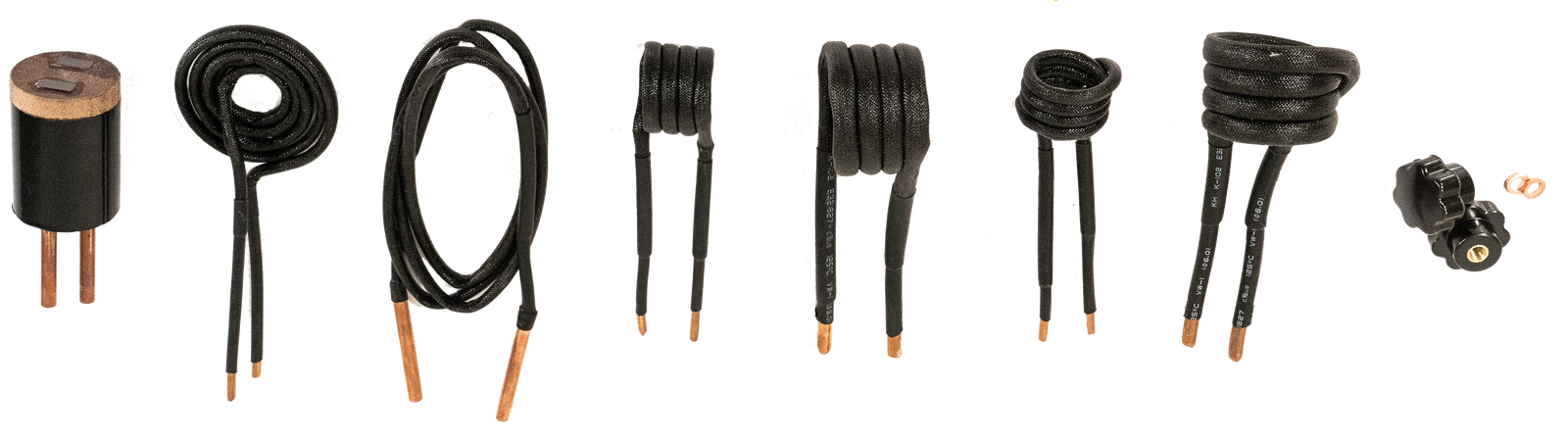 Nagrzewnica indukcyjna INDUCT 210 na wyposażeniu posiada:uchwyt wielofunkcyjny 1,5 m (INDUCT 210), przewód zasilający 1,8 m, cewkę indukcyjną pionową o wewnętrznej średnicy spirali 20 mm (przekrój 3 mm), cewką indukcyjną poziomą o wewnętrznej średnicy spirali 20 mm (przekrój 3 mm), cewkę indukcyjną pionową o wewnętrznej średnicy spirali 28 mm (przekrój 5 mm), cewką indukcyjną poziomą o wewnętrznej średnicy spirali 28 mm (przekrój 5 mm), cewkę indukcyjną płaską o średnicy 55 mm (przekrój 3 mm), cewkę indukcyjną giętką o długości 92 cm (przekrój 3 mm), cewkę indukcyjną do naprawy wgnieceń (nagrzewania blachy).