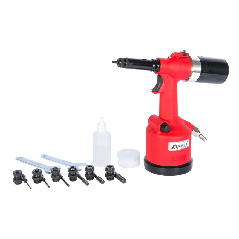 Przemysłowa nitownica do nitonakrętek marki MAGNUM. Hartowane elementy robocze zapewniają dużą żywotność urządzenia. Nitownica wykonana bardzo solidnie, jakość nieporównywalna do tańszych odpowiedników. Urządzenie wykonane z materiałów kompozytowych, co pozytywnie wpływa na trwałość i masę.