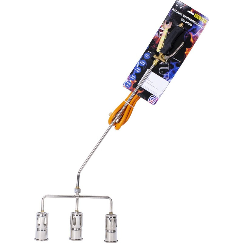 Łatwy w obsłudze uniwersalny palnik propanowo-powietrzny 3-dyszowy GT-3050 marki MAGNUM zasilany gazem propan-butan charakteryzuje się szerokim zakresem zastosowań. Idealnie nadaje się do prac dekarskich przy układaniu papy termozgrzewalnej oraz przy podobnych pracach w których potrzebne jest zastosowanie płomienia o dużej energii np:
