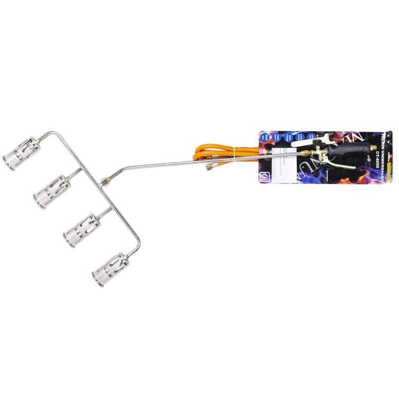 Łatwy w obsłudze uniwersalny palnik propanowo-powietrzny 4-dyszowy GT-4050 marki MAGNUM zasilany gazem propan-butan charakteryzuje się szerokim zakresem zastosowań. Idealnie nadaje się do prac dekarskich przy układaniu papy termozgrzewalnej oraz przy podobnych pracach w których potrzebne jest zastosowanie płomienia o dużej energii np: