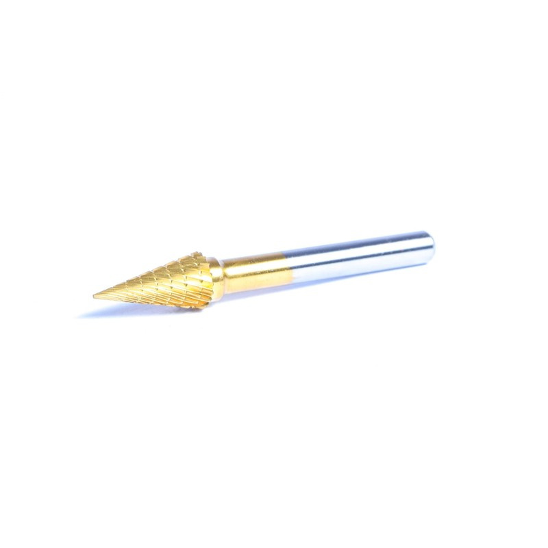 Pilnik obrotowy do metalu z węglika spiekanego VHM pokrytego powłoką azotku tytanu (TiN).