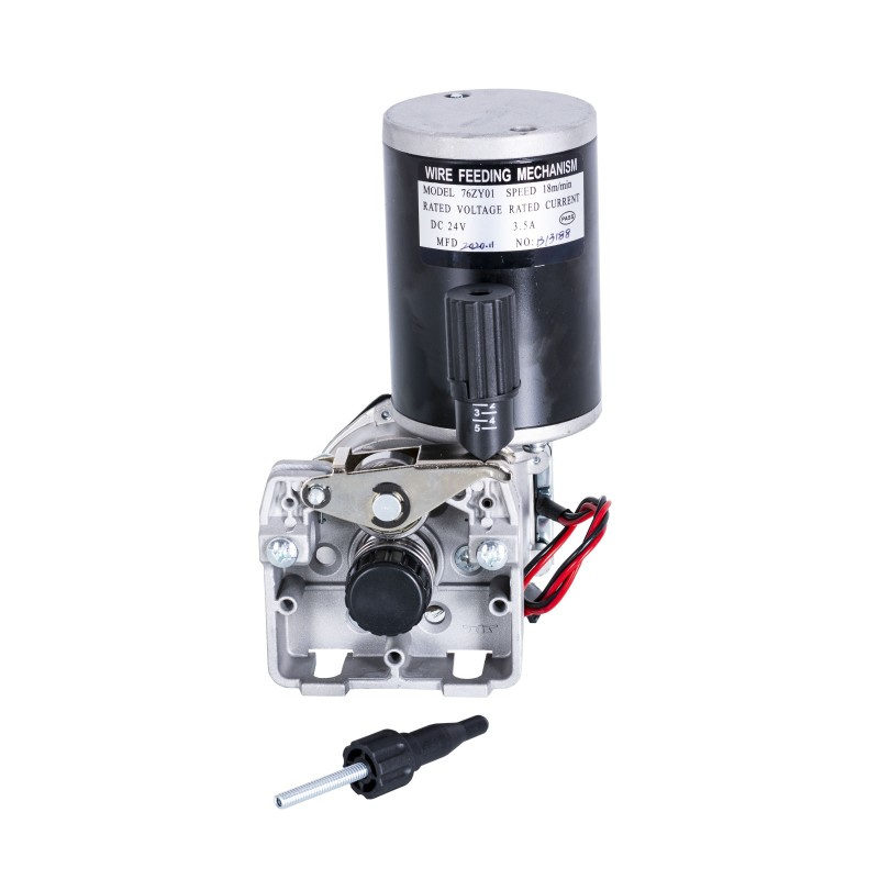 Podajnik drutu MAGNUM 2-ROL. 24V PRAWY to w pełni profesjonalny podajnik przeznaczony do półautomatów spawalniczych, które muszą pracować pod wysokim obciążeniem. Podajnik wykonany jest z ciśnieniowo odlewanego aluminium co znaczenie wydłuża jego żywotność. Wyposażony jest w dwie rolki napędzane kołami zębatymi. Podajnik posiada zamontowany silnik po prawej stronie patrząc od rolek prowadzących.