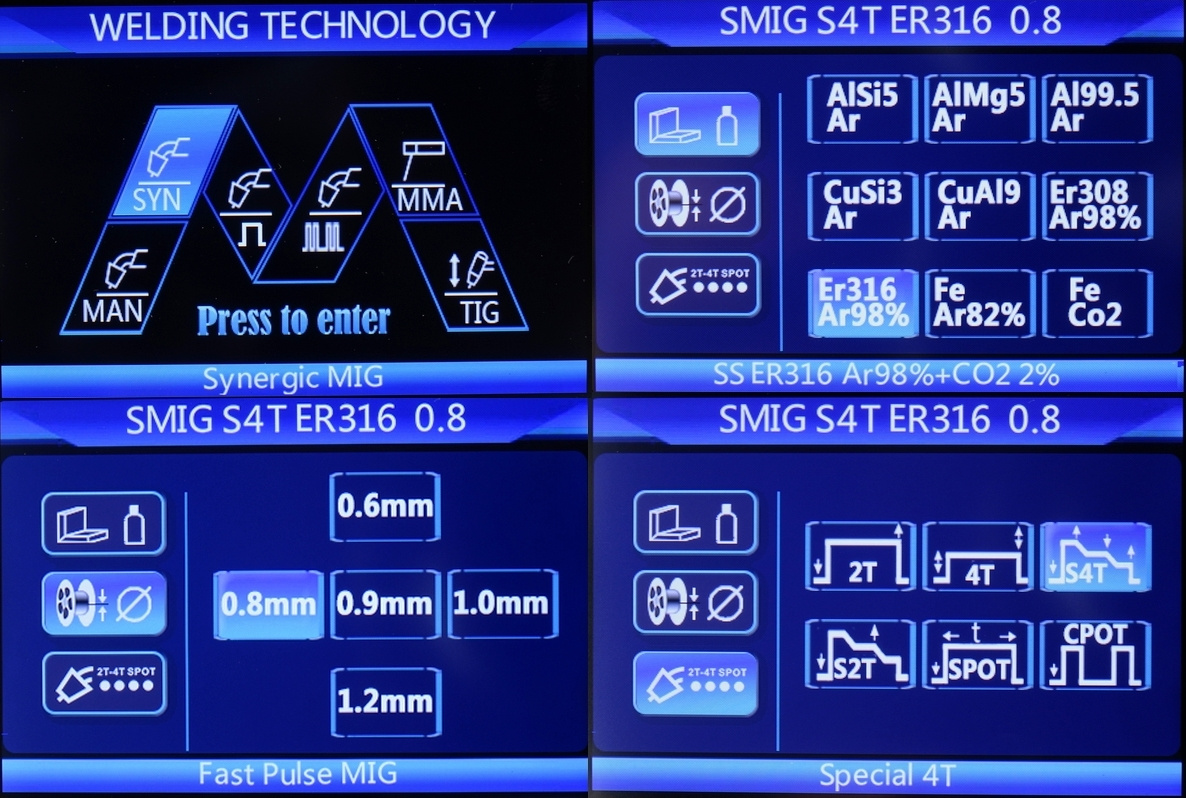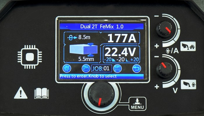 Ustaw parametry ręcznie bądz wybierz jeden z 52 synergicznych programów MIG/MAG do spawania : AlMg, AlSi, Al99,5, CuSi3, CuAl9, 308LSi, 316LSi oraz FE.