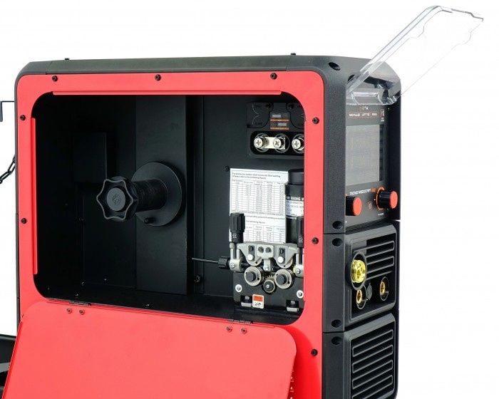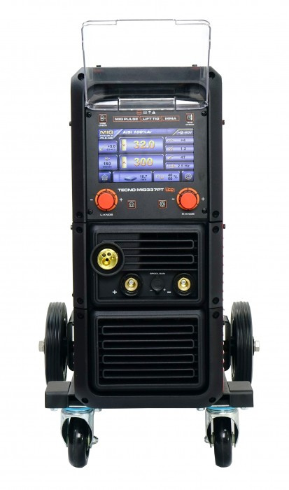 TECNOMIG 337 PULSE SYNERGIC LCD jest inwertorowym synergicznym półautomatem spawalniczym przeznaczonym do spawania łukowego metodą MIG/MAG, FLUX, MMA oraz TIG LIFT. Urządzenie zostało zaprojektowane do wykorzystania w użytku profesjonalnym. Stosowane jest do lutospawania blach ocynkowanych, spawania stali nierdzewnej, stali węglowych i niskostopowych oraz aluminium. Spawanie odbywa się w osłonie gazu obojętnego, aktywnego bądz mieszanki, oraz przy odwrotnej biegunowości bez gazu. TECNOMIG 337 PULSE SYNERGIC LCD posiada 6 synergicznych trybów spawania: MIG STAL CO₂ 100%, MIG STAL CO₂ 25%, MIG ALU ARGON 100%, MIG CUSI ARGON 100%, MIG STAL NIERDZEWNA ARGON 98% + CO₂ 2%, MIG SAMOOSŁONOWY. Dzięki zastosowaniu pulsacji MIG następuje zwiększenie ilości ciepła wprowadzanej do spawanego elementu. Możliwe jest uzyskanie lepszej spoiny, niezależnie od pozycji spawania oraz zmiejszenie ilości rozprysków. Zarówno przy metodzie MIG jak również MIG PULS mamy możliwość wyboru funkcji przycisku w uchwycie pomiędzy pracą w trybie 2-takt oraz 4-takt (blokada przycisku do długich spoin), Czytelny i prosty w obsłudze 7-calowy wyświetlacz LCD umożliwia dokładną regulację parametrów spawania takich jak : regulacja indukcyjności regulacja napięcia spawania regulacja posuwu drutu regulacja gazu po regulacja szerokości pulsu w podwójnym pulsie regulacja częstotliwości pulsacji w podwójnym pulsie HOT START: regulacja gorącego startu (ręczna) - ułatwia zapłon elektrody poprzez dostarczenie większego prądu spawania przy każdym zajarzeniu łuku. ANTI STICK: przeciwzwarciowa - automatycznie wyłącza napięcie spawania, jeśli elektroda sklei się ze spawanym materiałem, co ułatwia jej odrywanie i zapobiega przypadkowemu powstaniu łuku spawalniczego Funkcja VRD (Voltage Reduction Device) - redukuje napięcie spoczynkowe stanu jałowego na elektrodzie do wartości bezpiecznej. Zapewnia bezpieczeństwo przeciwporażeniowe podczas pracy w wilgotnym środowisku. Urządzenie posiada układ chłodzenia wentylatorem, zwiększający jego wydajność. Wyposażone jest w zabezpieczenie przeciw przeciążeniu, zwiększające jego niezawodność, oraz w gniazdo 36V umożliwiające podłączenie reduktora z podgrzewaczem. Urządzenie nie jest wyposażone we wtyczkę zasilania. Dostawa obejmuje urządzenie z profesjonalnym uchwytem spawalniczym MIG 36 o długości 3 metry, przewodem masowym o długości 3 metry, przewodem elektrodowym o długości 3 metry, rolkami do podajnika 0,8-1,0 i 1,0-1,2 do stali oraz 1,0-1,2 do aluminium. Parametry: Zabezpieczenie sieci zasilającej C16 A Znamionowe napięcie zasilania 3x400 V; 50Hz (3ph) Moc 11,5 kW Napięcie stanu jałowego 78 V Prąd maksymalny 300 A MIG/TIG // 250 A MMA Prąd przy pracy 100% 232 A MIG/TIG // 195 A MMA Prąd przy pracy 60% 300 A MIG/TIG // 250 A MMA Średnica drutu aluminiowego 1,0 - 1,2 mm Średnica drutu do lutospawania 0,8 - 1,2 mm Średnica drutu samoosłonowego 0,8 - 1,2 mm Średnica drutu stalowego 0,8 - 1,2 mm Średnica drutu ze stali nierdzewnej 0,8 - 1,2 mm Średnica elektrody spawalniczej 1,6 - 4,0 mm Zakres regulacji prądu spawania 30 - 300 A MIG/MAG // 10 - 300 A TIG // 10 - 250 A MMA Rozmiar szpuli drutu 15 kg / 5 kg Stopień ochrony IP 21S Waga urządzenia / zestawu 54 / 60 kg Wymiary gabarytowe dł x szer x wys 930x480x710 mm Wymiary opakowania urządzenia dł x szer x wys 690x300x630 mm Wymiary opakowania wózka dł x szer x wys 665x440x240 mm
