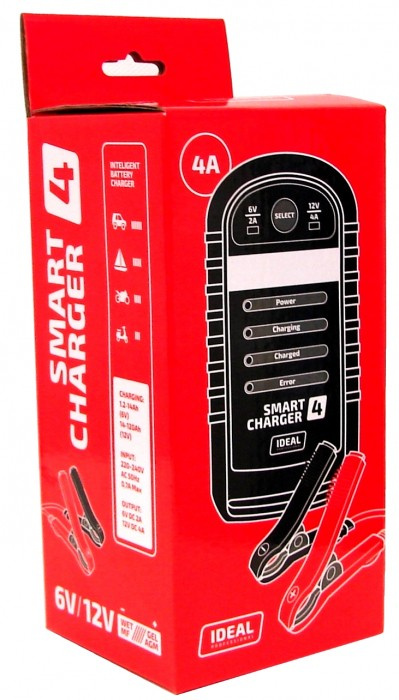 SMART CHARGER 4 jest inwertorowym, inteligentnym oraz przenośnym prostownikiem do 6 i 12 woltowych akumulatorów kwasowych, żelowych, AGM, MF oraz EFB o swobodnym przepływie elektrolitu, przeznaczonych dla pojazdów mechanicznych (benzyna i diesel), motocykli, łodzi motorowych, itp.