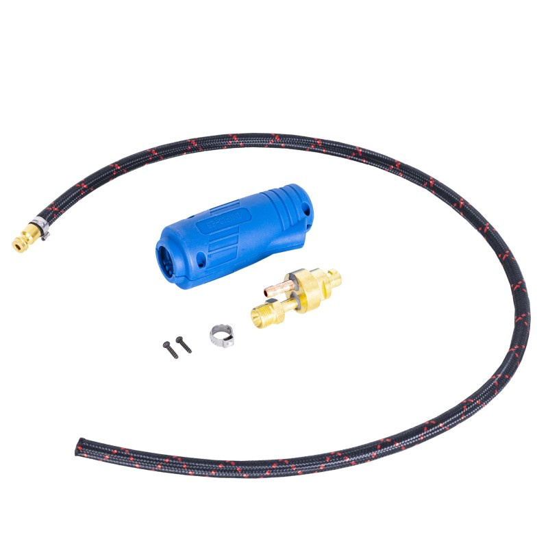 PRZYŁĄCZE PRĄDOWO-GAZOWE MAGNUM CX0080-WP " 50 " jest to przyłącze łączące uchwyt spawalniczy TIG z urządzeniem spawalniczym. Przyłącze zostało wyposażone we wtyk "50" (13mm) oraz boczne przyłącze gazu. Wąż gazowy który jest w komplecie został wyposażony we wtyk szybkozłącze typ 21.