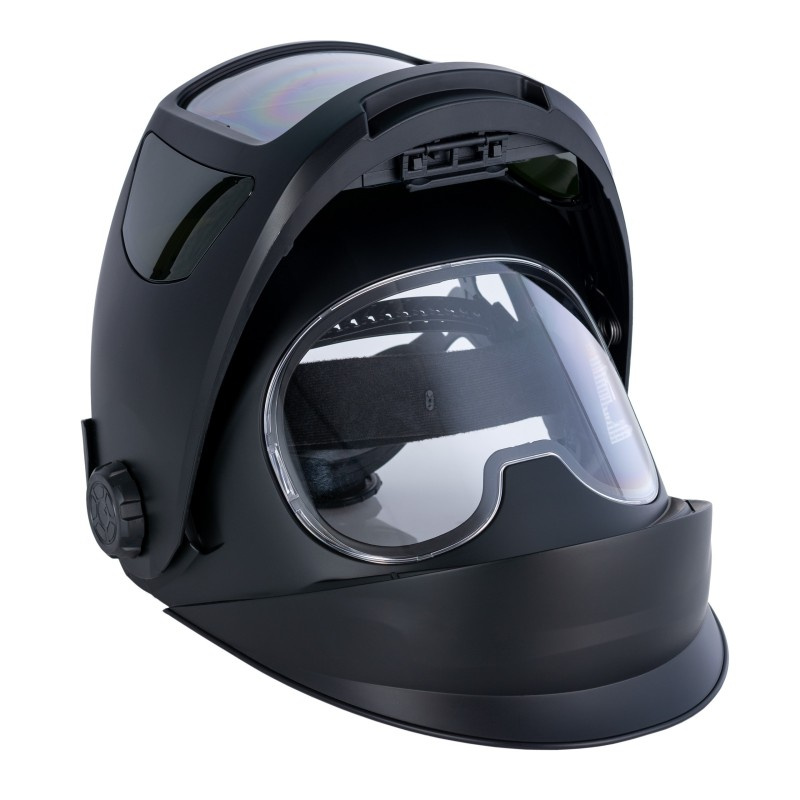 Automatyczna przyłbica spawalnicza Magnum FS8 FLIP UP to nowoczesne rozwiązanie, oferujące unikatową konstrukcję czaszy. Dzięki możliwości szybkiego i niezależnego unoszenia części z kasetą filtra automatycznego, zapewnia szerokie, niezaciemnione pole widzenia, nie rezygnując z ochrony twarzy i oczu przed pyłem i opiłkami.