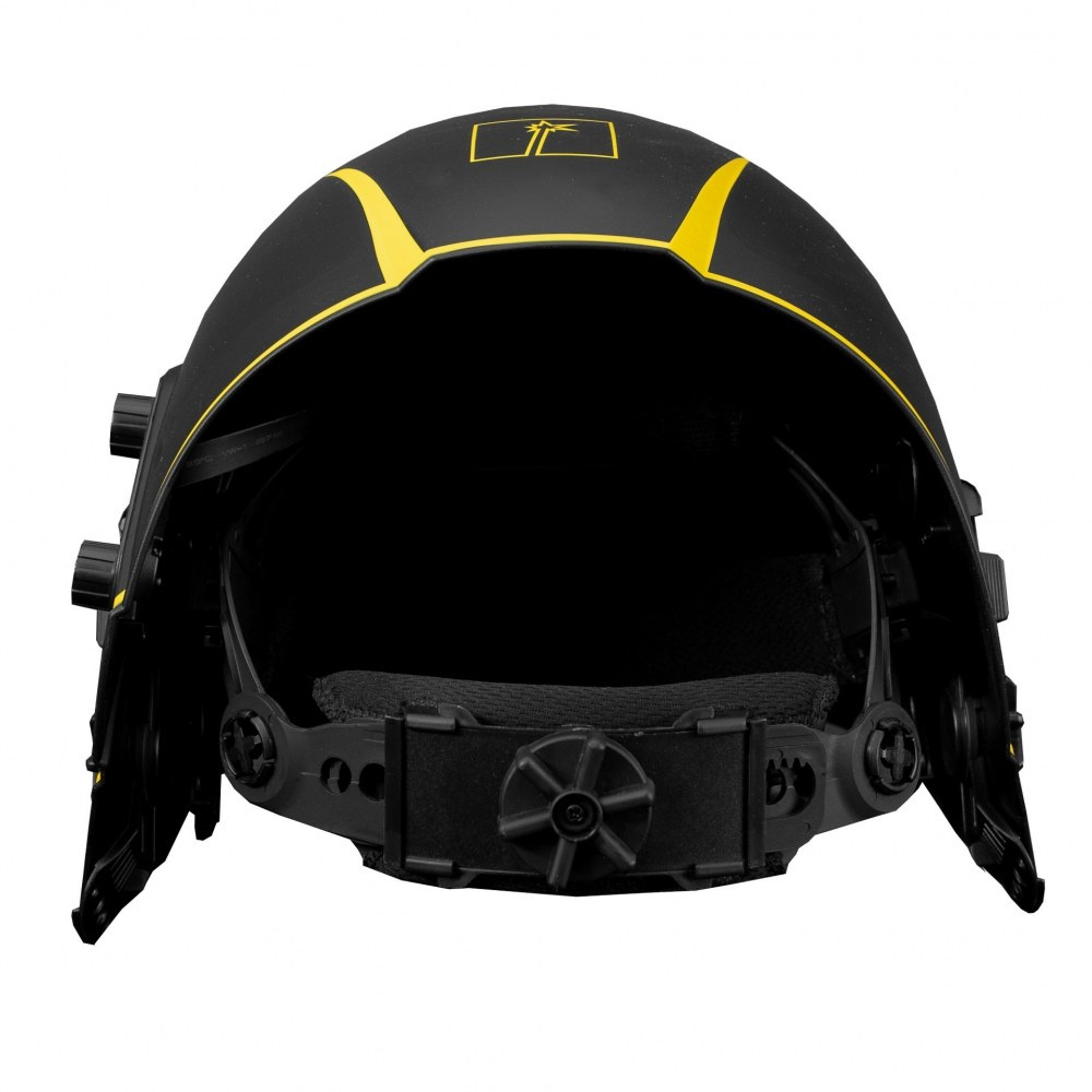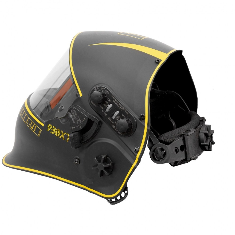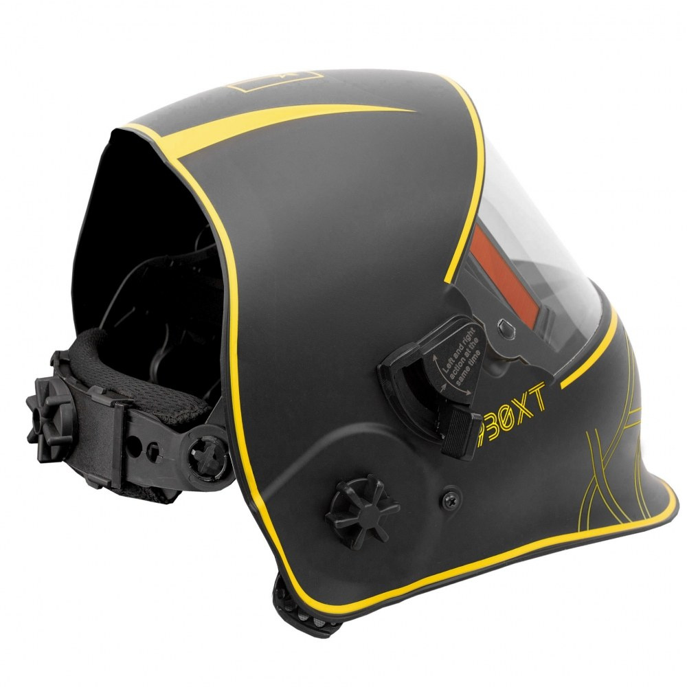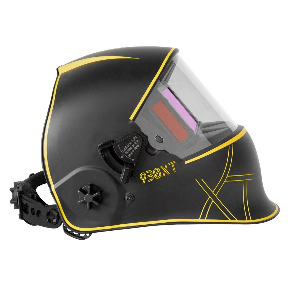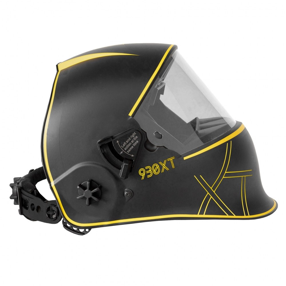 Przyłbica Pro 930XT posiada automatyczny filtr spawalniczy o najwyższej klasie optycznej – 1/1/1/1. Idealną widoczność zapewnia duże pole widzenia – 100x65mm. Przyłbica 930XT dodatkowo wyposażona jest w specjalny mechanizm podnoszenia i opuszczania filtra spawalniczego. Podczas jego podniesienia środek ciężkości przyłbicy jest niższy i zbiega się ze środkiem ciężkości głowy. Zmniejsza to zmęczenie szyi spawacza znacząco podnosząc jego komfort pracy. Zwiększa się również pole widzenia – 165x72mm, a oczy spawacza zabezpieczone są szybką ochronną.
