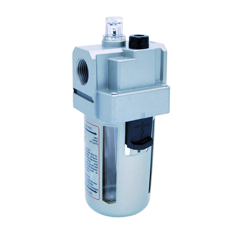 Smarownica sprężonego powietrza marki MAGNUM. Urządzenie posiada śrubę regulującą ilość dozowanego oleju, umożliwiając smarowanie narzędzi pneumatycznych zgodnie z zaleceniami producentów.