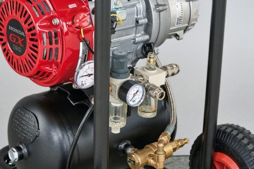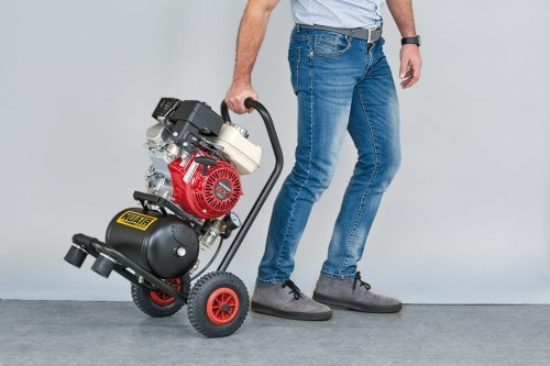 Spalinowy kompresor tłokowy na wózku NUAIR ze zbiornikiem o pojemności 3,2L, 7 bar, silnik Honda GX120