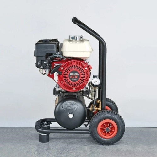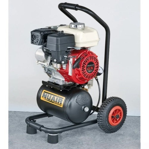 Profesjonalny mobilny kompresor spalinowy olejowy NUAIR FMPP6P1NUA wyposażony w wydajny silnik benzynowy Honda GX120 o mocy 3 kW / 4 KM, ten profesjonalny kompresor zapewnia wydajność ssania 235 l/min oraz wydmuchu 198 l/min przy maksymalnym ciśnieniu roboczym 10 bar. Dzięki zbiornikowi o pojemności 9,5 litra i mobilnej konstrukcji doskonale sprawdza się w pracy w terenie – bez potrzeby zasilania elektrycznego.
