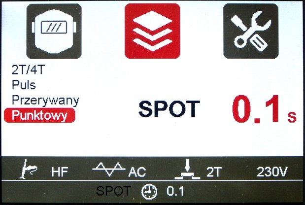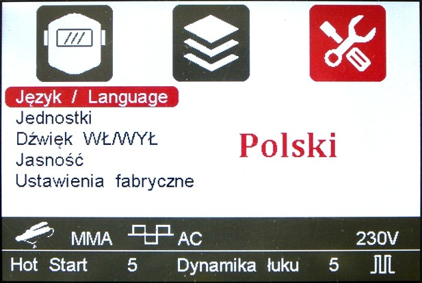 EXPERT TIG 220 AC/DC PULSE LCD jest przenośnym źródłem prądu, wykonanym w technologii IGBT, przeznaczonym do spawania metodą TIG i TIG PULS prądem zmiennym (AC), stałym (DC), oraz metodą MMA elektrodą otuloną prądem stałym (DC). Niewielkie rozmiary i waga sprawiają, że urządzenie doskonale sprawdza się zarówno w pracach warsztatowych jak i podczas prac terenowych. Urządzenie posiada tryby spawania: TIG DC TIG DC PULS TIG AC TIG AC PULS TIG PUNKTOWE MULTITACK TIG MIX TIG 2-LEVEL MMA AC MMA DC MMA PULS Funkcja TIG DC i TIG DC PULS stosowana jest do spawania stali nierdzewnej, stali węglowych i niskostopowych, miedzi oraz tytanu. Funkcja TIG AC i TIG AC PULS: umożliwia spawanie aluminium i jego stopów oraz mosiądzu. Funkcja TIG PUNKTOWE: umożliwia sczepianie cienkich materiałów. Funkcja TIG 2-LEVEL: regulacja prądu "2-level" umożliwia przełączanie pomiędzy wyższym i niższym poziomem prądu poprzez kolejne naciśnięcia przycisku w uchwycie spawalniczym. Funkcja MULTITACK – spawanie przerywane, funkcja umożliwiająca tzw „cold welding”; regulacja częstotliwości spoiny w zakresie 0.5÷6.0Hz Funkcja TIG MIX: to specjalna metoda spawania TIG, polegająca na połączeniu prądu stałego i zmiennego, umożliwia uzyskanie pełnego wtopienia i skutecznego czyszczenia podczas spawania aluminium. Dzięki regulacji parametrów spawania pulsacyjnego TIG PULS mamy wpływ na kształt spoiny i skupienie łuku. Spawanie pulsacyjne pozwala również zmniejszyć ilość ciepła dostarczanego do materiału i ma zastosowanie podczas spawania cienkich materiałów. Zajarzenie łuku następuje w trybie z bezdotykowym (HF) lub dotykowym (LIFT). Funkcja LIFT stosowana jest w podczas spawania w środowisku o wysokim ryzyku wpływu zakłóceń elektromagnetycznych na otoczenie. Zarówno przy zapłonie bezdotykowym HF jak i dotykowym LIFT mamy możliwość wyboru funkcji przycisku w uchwycie TIG pomiędzy pracą w trybie 2-takt lub 4-takt (blokada przycisku do długich spoin). Czytelny i prosty w obsłudze panel sterowania umożliwia dokładną regulację urządzenia, zapewnia stabilne parametry i wysoką jakość spawania. Urządzenie posiada 10 miejsc zapisów programów spawania użytkownika. Wyświetlacz LCD ułatwiaja regulację parametrów spawarki: początkowy wypływ gazu osłonowego prąd początkowy czas narastania prądu prąd spawania prąd bazy czas opadania prądu prąd końcowy końcowy wypływ gazu osłonowego szerokość pulsu częstotliwość pulsu balans AC częstotliwość AC wartość HOT START wartość ARC FORCE Z panelu sterowania mamy możliwość wyboru przebiegu krzywej napięcia AC : TIG AC – przebieg napięcia prostokątny TIG AC – przebieg napięcia trójkątny TIG AC – przebieg napięcia sinusoidalny Dodatkowo funkcja MultiWAVE umożliwia ustawienie charakterstyki składającej się z dwóch krzywych. Przy metodzie MMA mamy mozliwość spawania pulsacyjnego, oraz regulacji jego następujących parametrów: regulacja prądu bazy regulacja częstotliwości pulsu regulacja szerokości pulsu Spawarka posiada również funkcje ułatwiające proces spawania metodą MMA elektrodą otuloną: ARC FORCE: regulacja prądu zwarcia (ręczna) - ułatwia przenoszenie kropli roztopionej elektrody na spawany materiał, zapobiegając wygaszeniu łuku podczas zetknięcia kropli elektrody z jeziorkiem spawalniczym HOT START: regulacja gorącego startu (ręczna) - ułatwia zapłon elektrody poprzez dostarczenie większego prądu spawania przy każdym zajarzeniu łuku. ANTI STICK: przeciwzwarciowa - automatycznie wyłącza napięcie spawania, jeśli elektroda sklei się ze spawanym materiałem, co ułatwia jej odrywanie i zapobiega przypadkowemu powstaniu łuku spawalniczego EXPERT TIG 220 AC/DC PULSE LCD posiada układ chłodzenia wentylatorem co zdecydowanie zwiększa jego wydajność. Układ chłodzenenia wentylatorem - uruchamiany tylko w razie potrzeby - ogranicza zanieczyszczenie wewnątrz urządzenia. Szybkozłącze podłączenia gazu do uchwytu spawalniczego umożliwia natychmiastowe podłączenie i odłączenie uchwytu spawalniczego bez użycia narzędzi. Wyposażony jest, także w zabezpieczenie przeciw przeciążeniu, co zwiększa jego niezawodność. Urządzenie wyposażone jest we wtyczkę zasilania. Dostawa obejmuje urządzenie z kompletem akcesorii TIG i MMA: uchwytem spawalniczym TIG 26 ze zdalną regulacją o długości 4 metry, przewodem elektrodowym MMA o długości 3m, przewodem masowym o długości 3m. Parametry: Zabezpieczenie sieci zasilającej C25A MMA / C20A TIG Znamionowe napięcie zasilania 230V, 50-60Hz, 1ph Balans AC (-5) - 5 Czas narastania prądu 0 - 10s Czas opadania prądu 0 - 10s Częstotliwość AC 50 - 250Hz Częstotliwość pulsu 0,5 - 999Hz Długość pulsu 5 - 95% Gaz po 0 - 10s Gaz przed 0,1 - 2s Moc 7,7kW Napięcie stanu jałowego 95V Prąd bazy w pulsie 5 - 220A Prąd końcowy 5 - 220A Prąd maksymalny 220A Prąd przy pracy 100% 155A Prąd przy pracy 60% 200A Prąd startowy 5 - 220A Średnica elektrody spawalniczej 1,6 - 4,0mm Zakres regulacji prądu spawania 5 - 220A Stopień ochrony IP23 Waga urządzenia / zestawu 13 / 16kg Wymiary gabarytowe dł x szer x wys 530x195x370mm