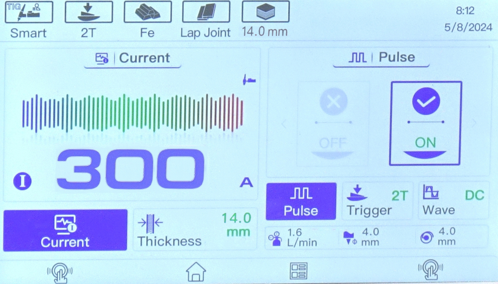 Czytelny i prosty w obsłudze dotykowy ekran LCD, umożliwia dokładną regulację urządzenia, zapewnia stabilne parametry i wysoką jakość spawania. Źródło posiada również rozszerzone ustawienia użytkowe, takie jak poziom jasności ekranu, ustawienie daty oraz pracę wentylatora w trybie półpasywnym (SMART).