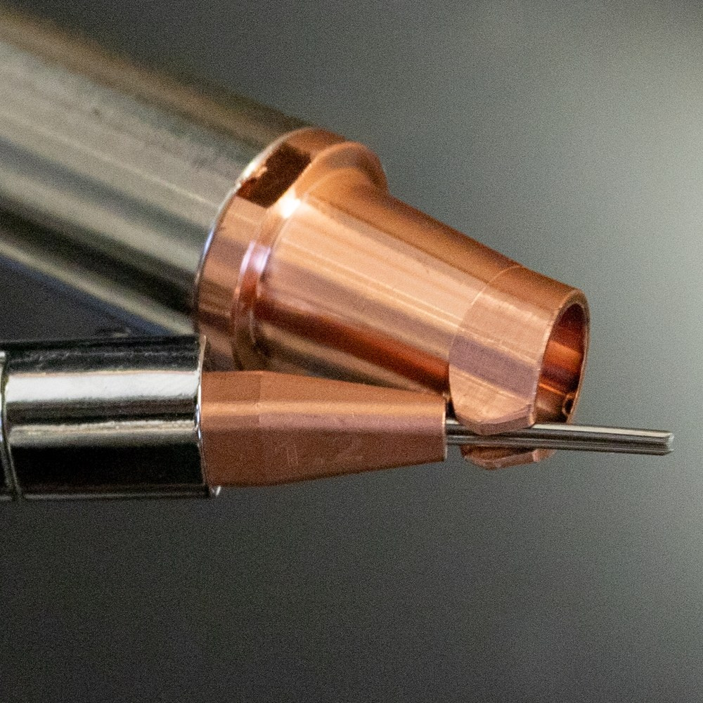 Cięcie laserowe umożliwia precyzyjne oddzielanie materiałów, tworząc dokładne i czyste krawędzie bez konieczności mechanicznej obróbki. Funkcja cięcia jako dodatkowa opcja urządzenia pozwala na cięcie stali nierdzewnej do 2mm, stali węglowej do 1.5mm. Miedź i aluminium to materiały o współczynniku silnie odbijający wiązkę, nie powinny być poddawane procesowi cięcia laserowego.