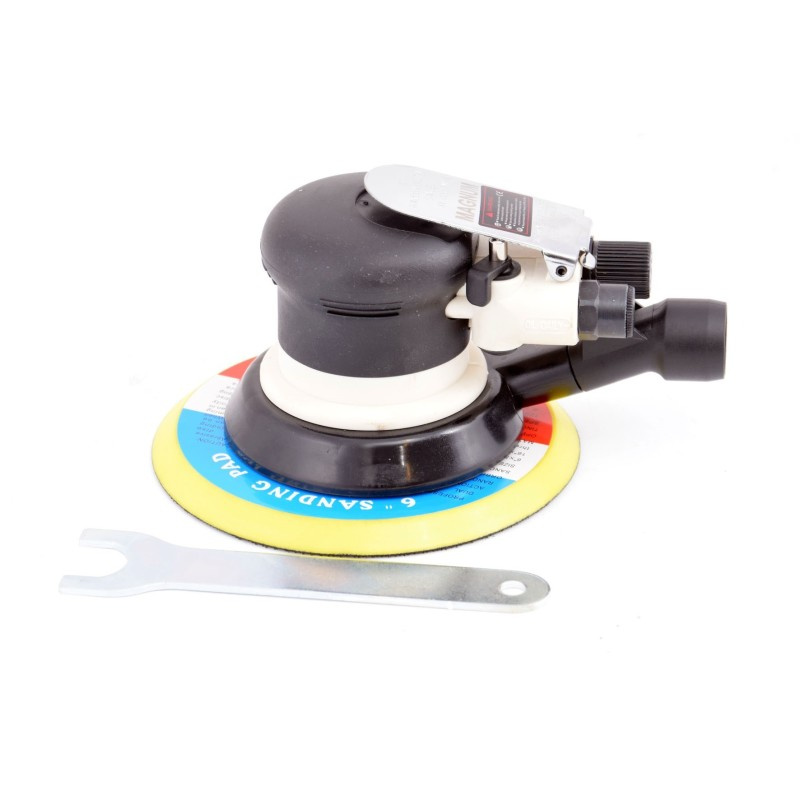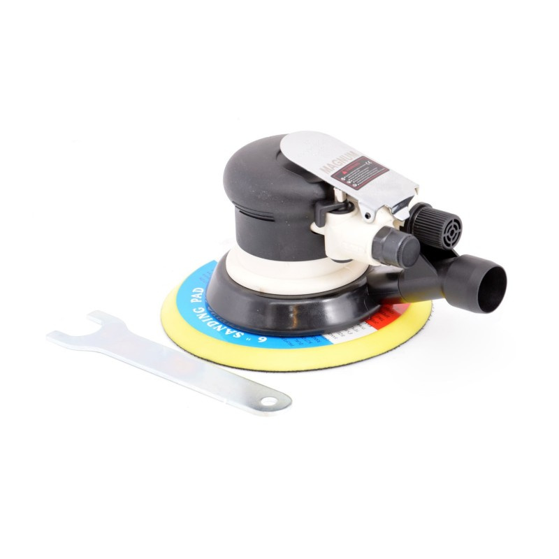 Pneumatyczna szlifierka marki MAGNUM. Szlifierka mimośrodowa znajduje zastosowanie zarówno w przemyśle jak i wszelkiego rodzaju warsztatach zajmujących się przygotowaniem powierzchni. Mimośrodowy ruch tarczy o skoku 5 mm gwarantuje równomierną i precyzyjną obróbkę powierzchni. Ergonomiczny kształt uchwytu oraz dźwigni włączającej zapewnia pełną swobodę operowania szlifierką. Tarcza posiada otwory które umożliwiają zastosowanie odciągu co wpływa na porządek podczas wykonywanej pracy.
