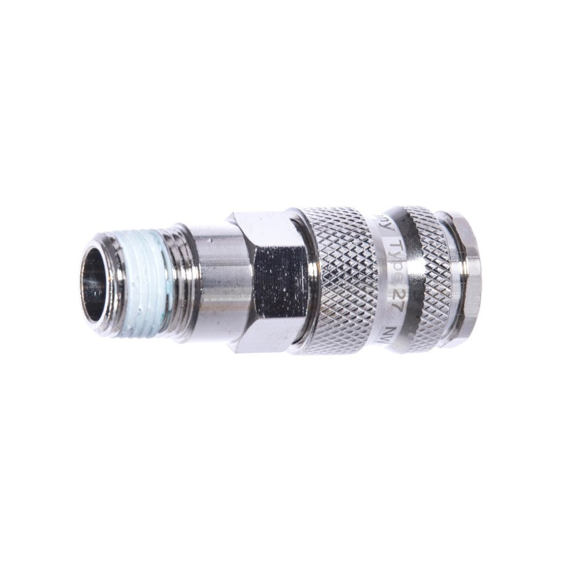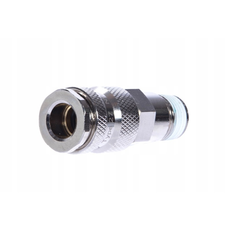 Złącze pneumatyczne przemysłowe (typ 27) firmy MAGNUM o profilu europejskim wykonane w technologi "HIGH FLOW". Szybkozłącze o bardzo wysokim przepływie i znikomym ubytku ciśnienia, znajdzie zastosowanie w przemyśle ciężkim, narzędziach pneumatycznych i liniach produkcyjnych. Do zalet złącza należy bardzo wysoka jakość wykonania i możliwość obsługi jedną ręką.