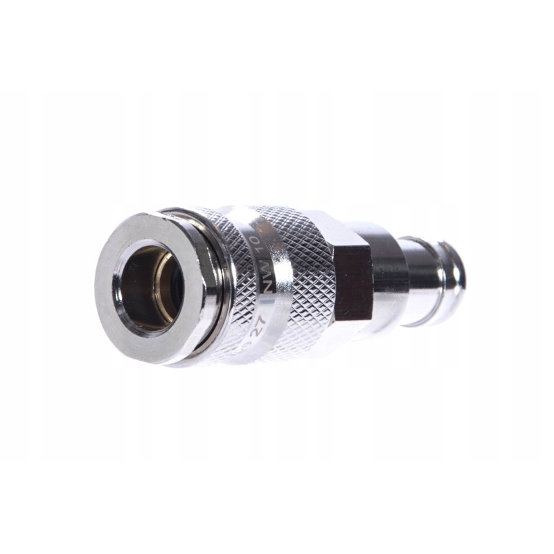Złącze pneumatyczne przemysłowe (typ 27) firmy MAGNUM o profilu europejskim wykonane w technologi "HIGH FLOW". Szybkozłącze o bardzo wysokim przepływie i znikomym ubytku ciśnienia, znajdzie zastosowanie w przemyśle ciężkim, narzędziach pneumatycznych i liniach produkcyjnych. Do zalet złącza należy bardzo wysoka jakość wykonania i możliwość obsługi jedną ręką.