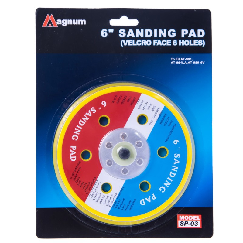 Tarcza z rzepem firmy MAGNUM przeznaczona do szlifierek mimośrodowych. Dysk posiada sześć otworów co umożliwia korzystanie z odsysu szlifierki pneumatycznej. Talerz wyposażony w mocny rzep zapobiegający odklejaniu się krążków ściernych oraz przekładkę dystansową, która umożliwia kontrolę siły docisku podczas pracy.