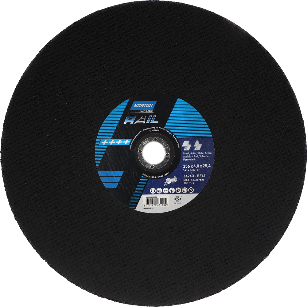 Tarcza ścierna Norton Q-BF41 T1A - 356x4x25.4 mm to wysokiej klasy tarcza do cięcia szyn, która została zaprojektowana z myślą o pracy w wymagających warunkach. Jej solidna konstrukcja i sprawdzone materiały gwarantują długą żywotność oraz niezawodność podczas intensywnego użytkowania, co czyni ją idealnym wyborem zarówno dla profesjonalistów, jak i warsztatów przemysłowych.