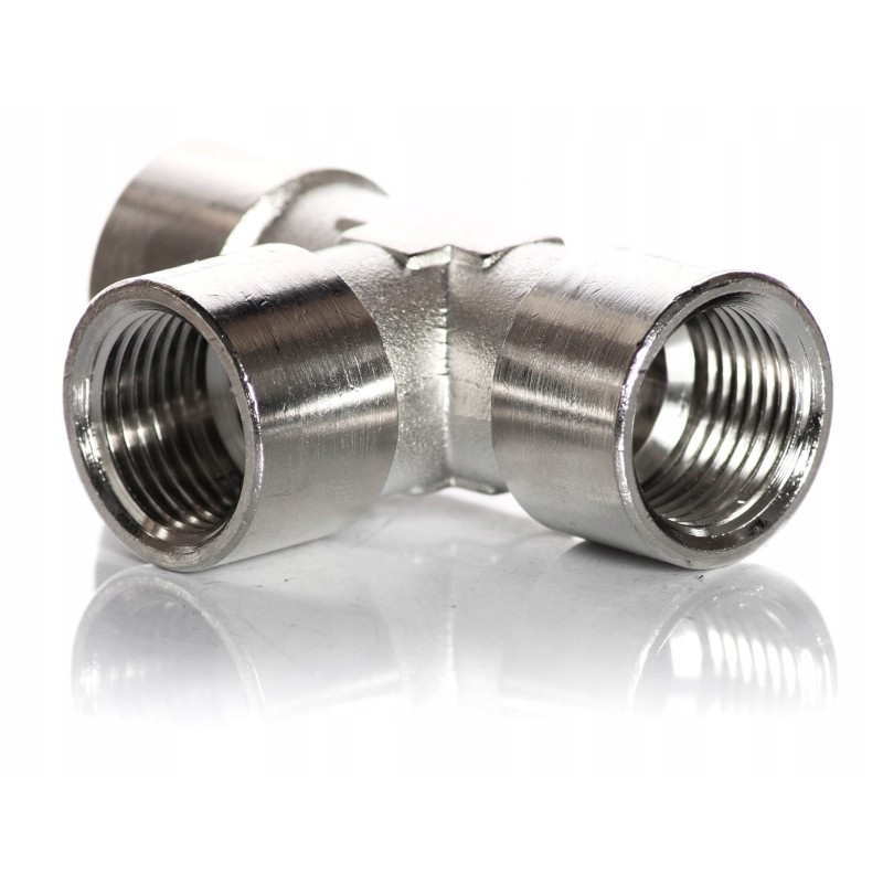 Trójnik gwintowany z mosiądzu niklowanego umożliwia łączenie elementów instalacji pneumatycznych i hydraulicznych. Złączka cechuje się wysoką odpornością na działanie szkodliwych czynników takich jak wilgoć (wysoka odporność na korozję), oleje czy wysoka temperatura. Nadaje się do instalacji pneumatycznych, gazowych, wodnych i ciepłowniczych.