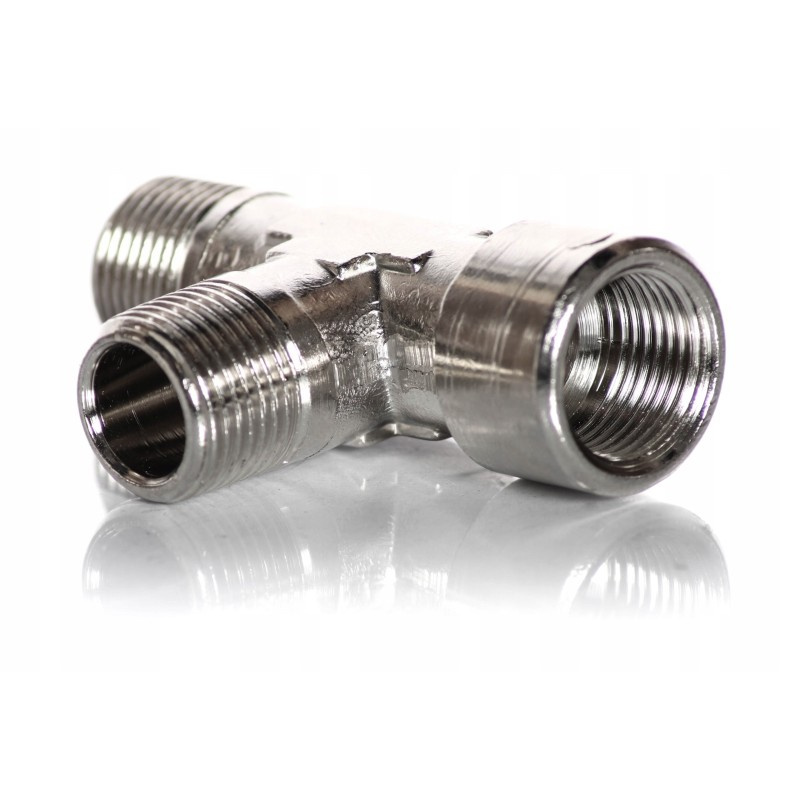Trójnik gwintowany z mosiądzu niklowanego umożliwia łączenie elementów instalacji pneumatycznych i hydraulicznych. Złączka cechuje się wysoką odpornością na działanie szkodliwych czynników takich jak wilgoć (wysoka odporność na korozję), oleje czy wysoka temperatura. Nadaje się do instalacji pneumatycznych, gazowych, wodnych i ciepłowniczych.