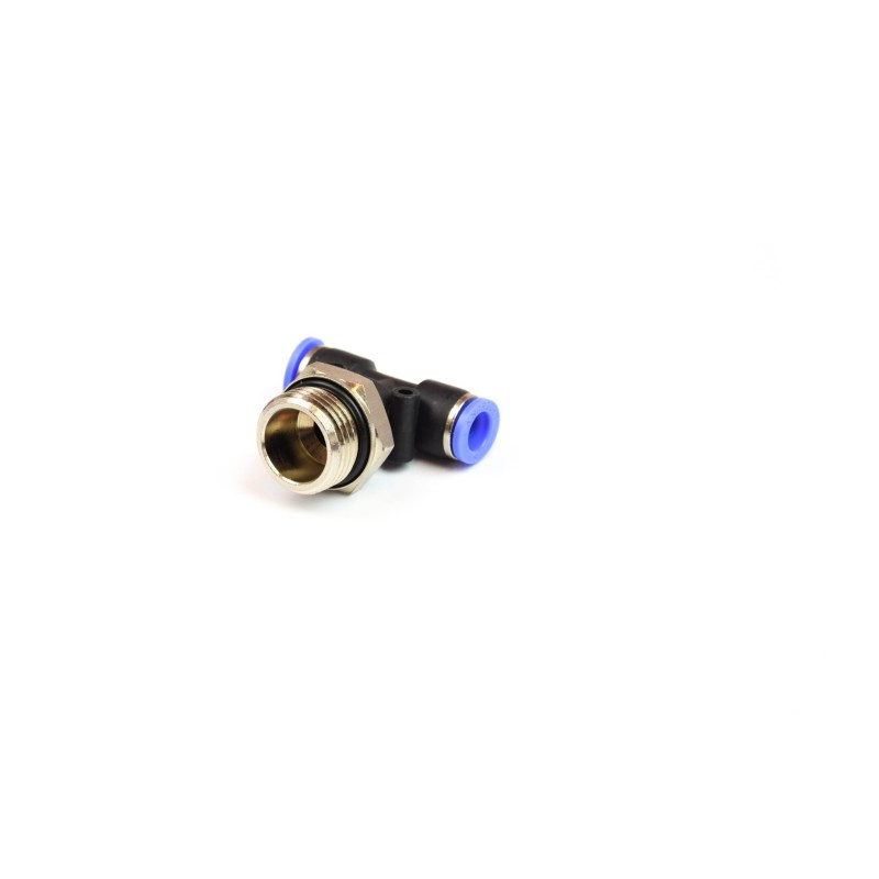 Złączka wtykowa trójnik obrotowy typu T do instalacji pneumatycznych pozwala na proste i szybkie łączenie elementów instalacji pneumatycznych. Połączenie pomiędzy częścią metalową, a korpusem z tworzywa pozwala na wykonanie obrotu w celu odpowiedniego ułożenia kierunku przewodu.