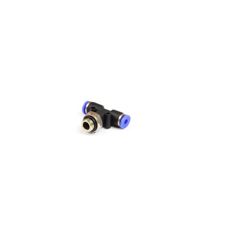 Złączka wtykowa trójnik obrotowy typu T do instalacji pneumatycznych pozwala na proste i szybkie łączenie elementów instalacji pneumatycznych. Połączenie pomiędzy częścią metalową, a korpusem z tworzywa pozwala na wykonanie obrotu w celu odpowiedniego ułożenia kierunku przewodu.