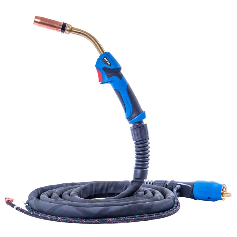 Uchwyt zakończony jest znormalizowanym przyłączem typu EURO, pasującym do większości półautomatów spawalniczych.