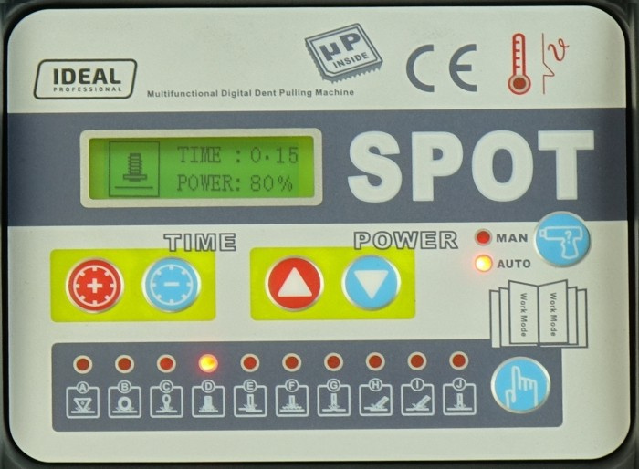 Wszystkie ustawienia zgrzewarki dostępne są z panelu sterowania. Po wyborze rodzaju narzędzia urządzenie samo dopasuje prąd zgrzewania i optymalne cykle pracy. Istnieje również możliwość ręcznego ustawienia czasu i prądu do zgrzewania.
