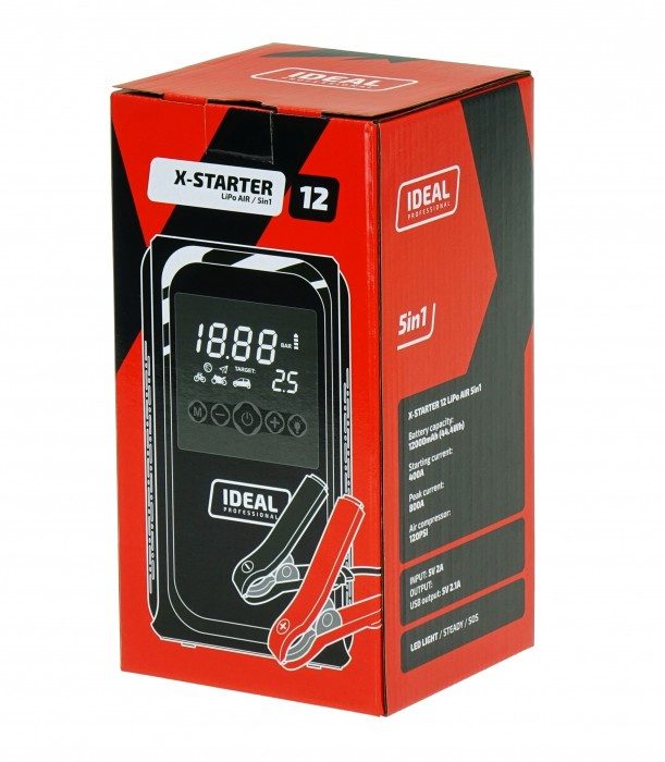 X-STARTER 12 LiPo AIR 5in1 jest przenośnym urządzeniem do wspomagania rozruchu pojazdów, zbudowanym na bazie baterii litowej, łączącym funkcje: