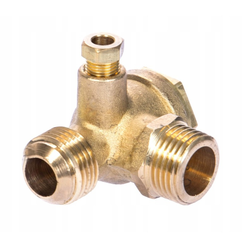 Zawór zwrotny do kompresora firmy MAGNUM, zapobiegający cofaniu się ciśnienia z butli na pompę oraz odpowietrzający przewód tłoczny. Wykonany w całości z mosiądzu i odporny na drgania. Grzybek zaworu wykonany z NBR. Wyprodukowany we Włoszech.