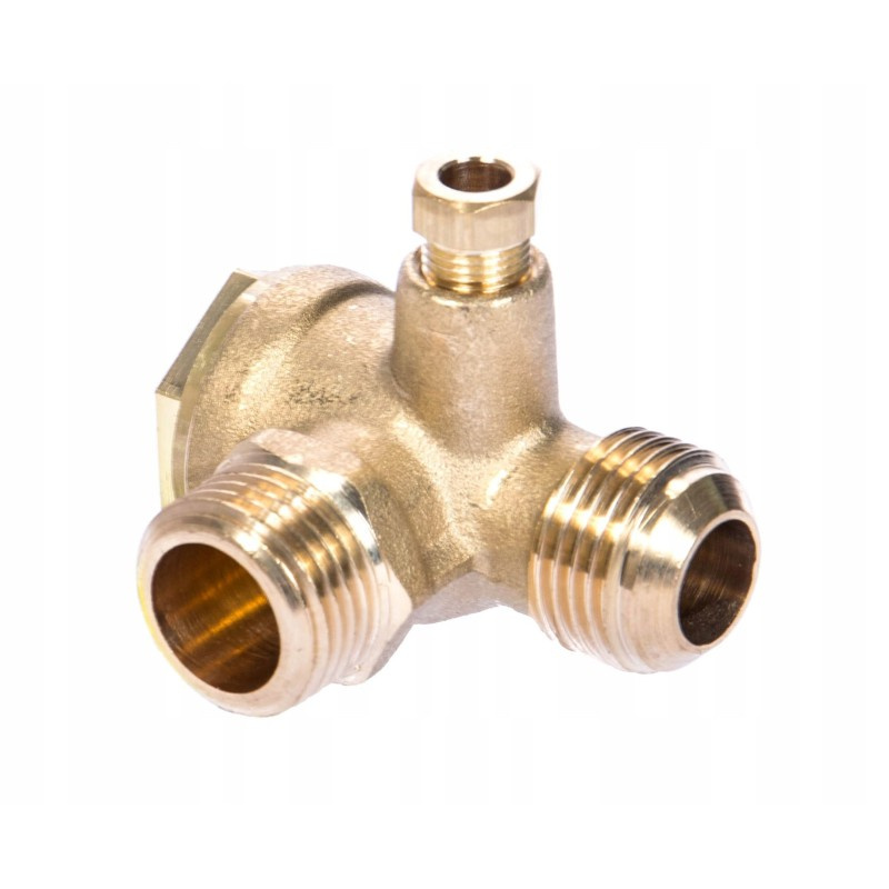 Zawór zwrotny do kompresora firmy MAGNUM, zapobiegający cofaniu się ciśnienia z butli na pompę oraz odpowietrzający przewód tłoczny. Wykonany w całości z mosiądzu i odporny na drgania. Grzybek zaworu wykonany z NBR. Wyprodukowany we Włoszech.