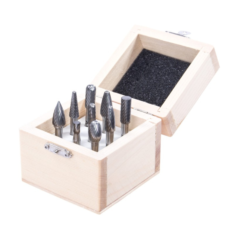 Zestaw pilników do metalu MAGNUM z węglika spiekanego VHM. Frezy ze stali szybkotnącej są zwykle używane do obróbki miękkiej stali, aluminium, brązu, mosiądzu itp. Wszystkie frezy posiadają średnicę chwytu 6 mm.